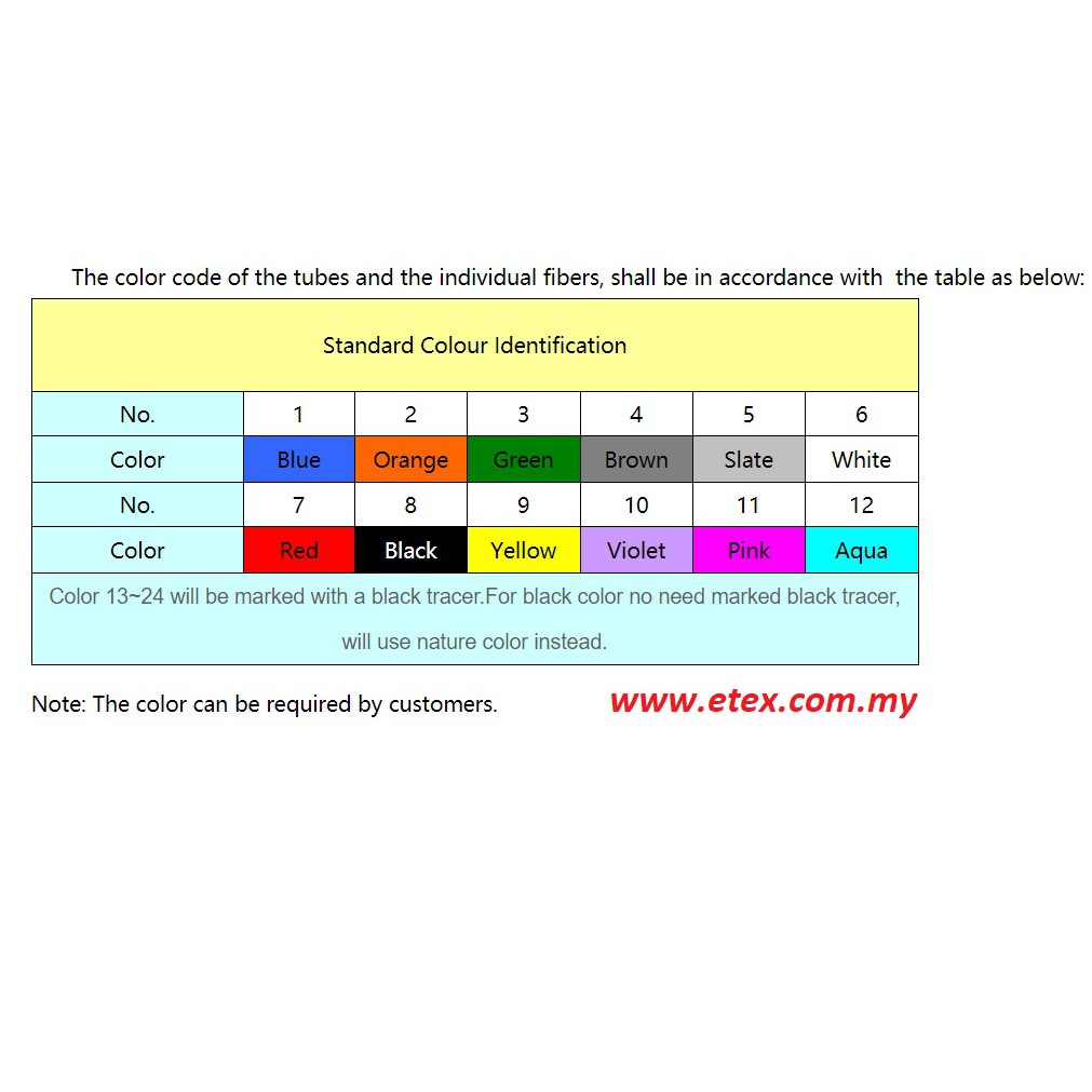 Its colours are blue green orange aqua rose violet yellow black red white slate and brown. This Standard provides all necessary information for color coding optical fiber cables in a uniform manner. For cables that have over 12 strands the color.